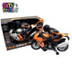 - Simulate the front of the vehicle, link the wheel of the motorcycle to the vehicle, turn the handlebar left and right, and the wheels will rotate accordingly. Simulation seat, clear texture body, cool high intensity LED headlight, exquisite detail